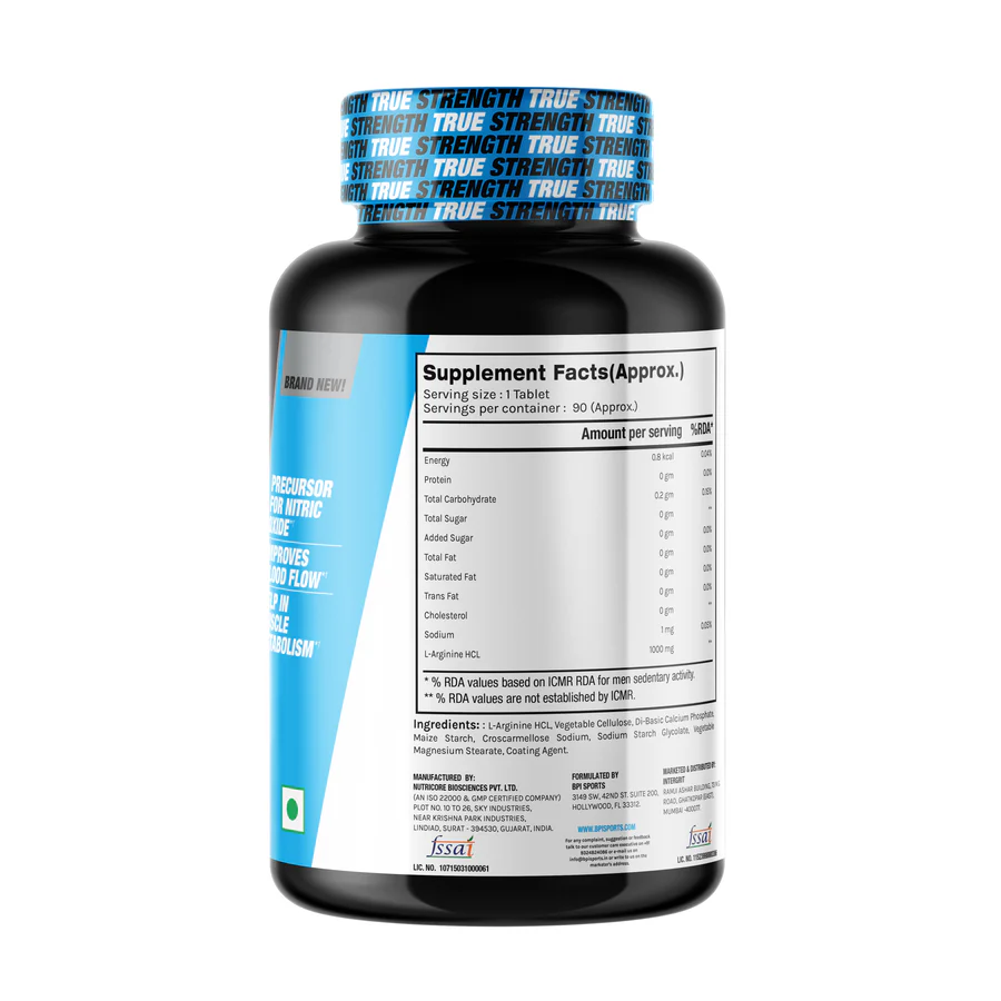 BPI SPORTS L ARGININE TABLETS 90 SERVINGS- UNFLAVOURED, HELPS IMPROVE BLOOD FLOW, PRECURSOR FOR NITRIC OXIDE