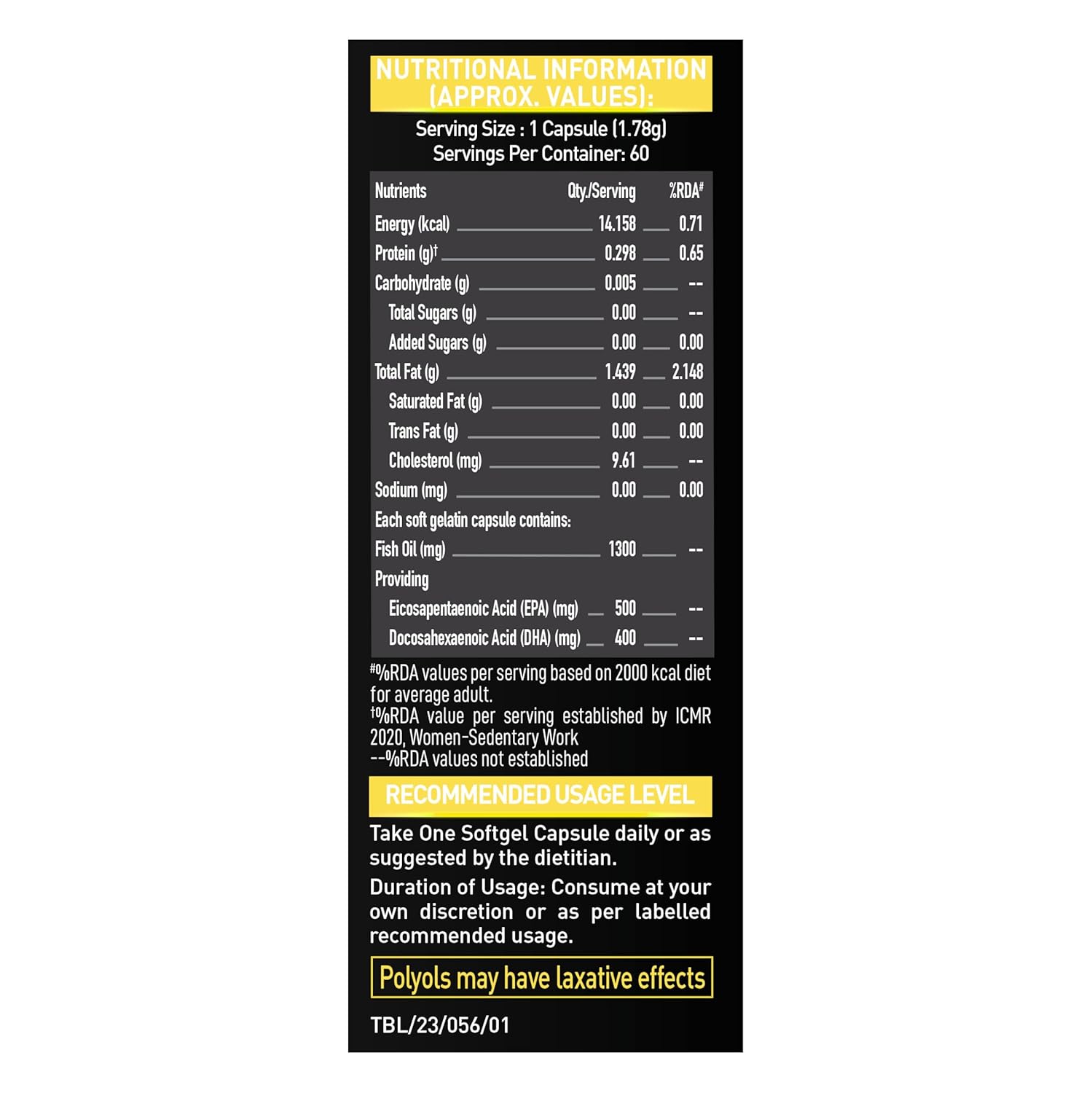 Recover Faster with Triple Strength Omega: MB Fish Oil Gold is loaded with 3 times more EPA (500mg) and DHA (400 mg) and is anti-inflammatory in nature. Omega 3 here helps reduce muscle soreness and Delayed Onset of Muscles (DOMS).