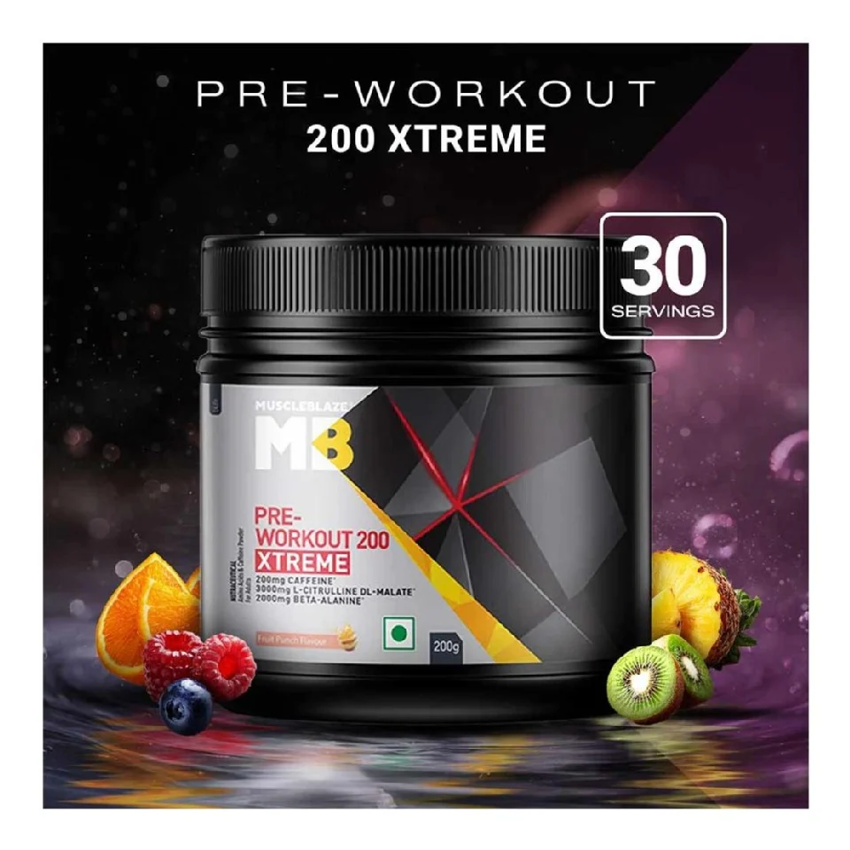 MuscleBlaze Pre-Workout 200 Xtreme is packed with 2000 mg Beta Alanine, a non-essential amino acid that is produced by the body naturally. It prevents early muscle fatigue and keeps you all fuelled up and charged when you are working out.