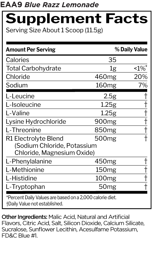 ^These statements have not been evaluated by the Food and Drug Administration. Rule 1 Essential Amino 9 EAA 30 Serving This product is not intended to diagnose, treat, cure, or prevent any disease.